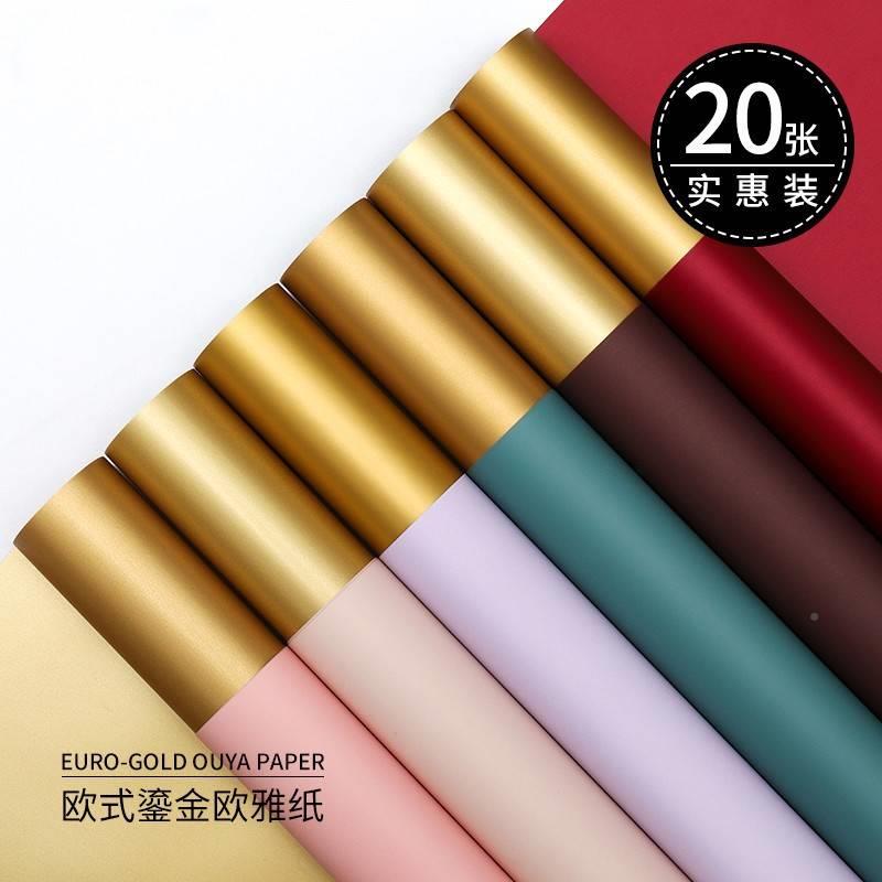 Oya paper opening flower basket flower shop Korean style bouquet wrapping paper Han fi paper waterproof double face bicolor gold gold luxury paper-Taobao