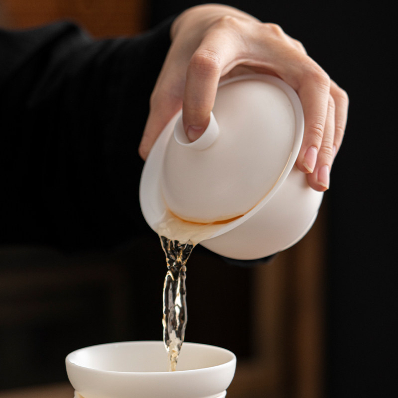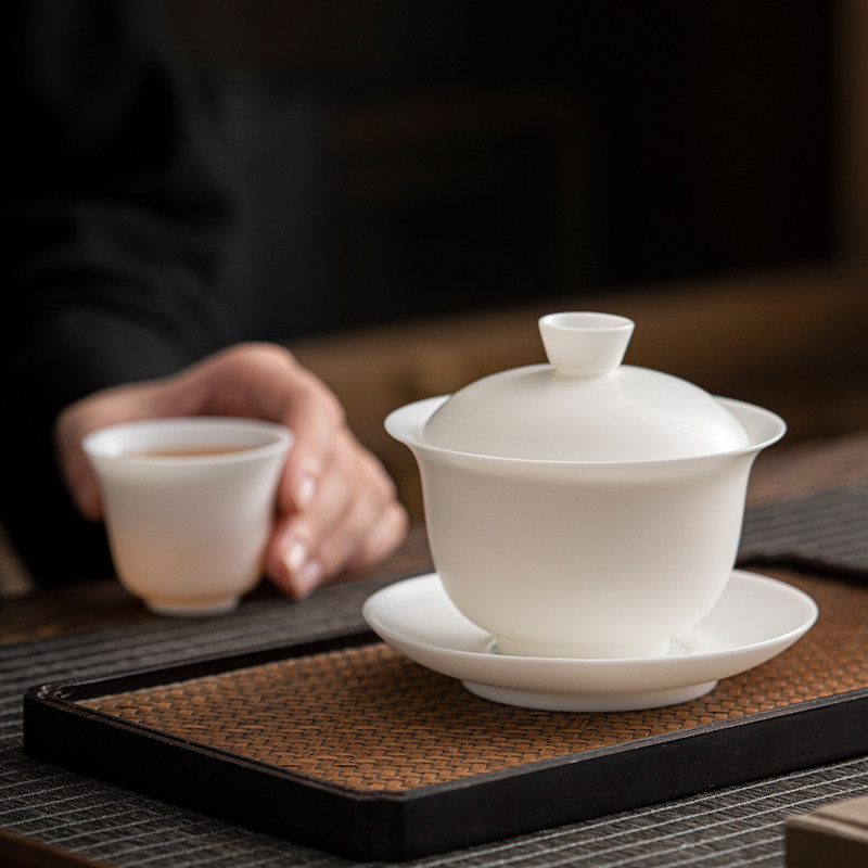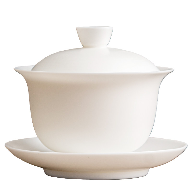 Defied Pig Oil White Goat Fat Jade Three only cover Bowl Vegetarian Burn White Porcelain Tea Tea Single Cup Big Number Home Utiliti Tea Furniture-Taobao