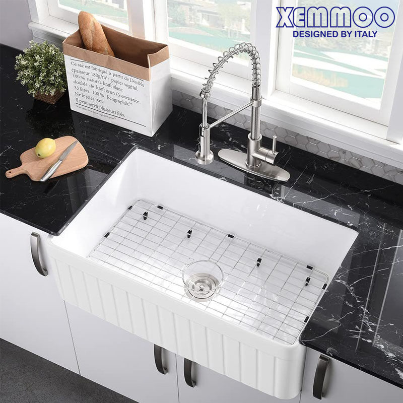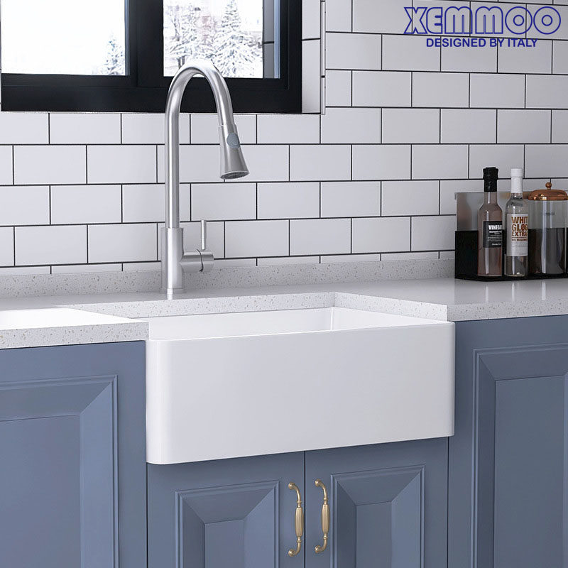 XEMMOO European and American retro ceramic front kitchen washing basin FARMHOUSE semi-embedded farmhouse large single double sink-Taobao