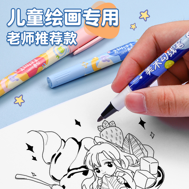 Morning Light Fine Arts Special Hook Line Pen Elementary School Students Special Oily Sketching Pen Teacher Recommended Black Double Head Mark Pen Mark Pen Painting Seducer Pen-Taobao