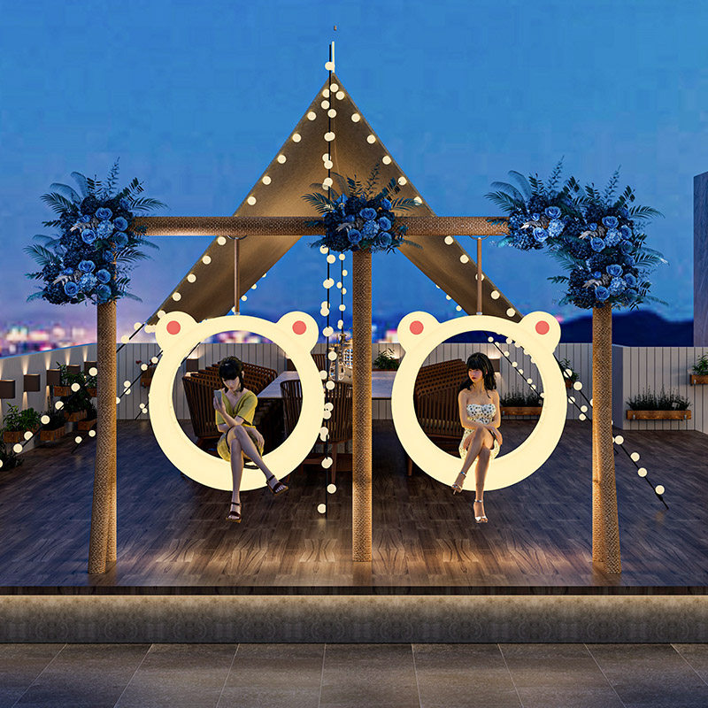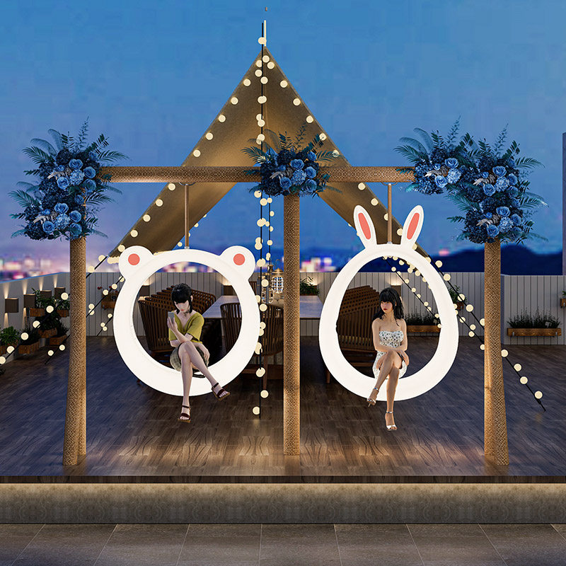 Outdoor moon Qiqiannet red luminous rabbit Panda Hanging Chair Folk Camping Courtyard outdoor children Multiperson rocking chair-Taobao