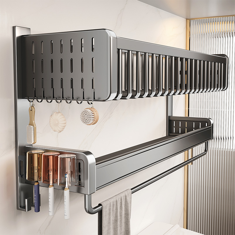 Gun Grey-Upgrade Thickened Double Layer 39cm Bath Towel Rack Shelf 5 Movable Hook Gun Grey-Upgrade Thickened Double Layer 49cm Bath Towel Rack Shelf 5 Removable Hook Gun Ash
