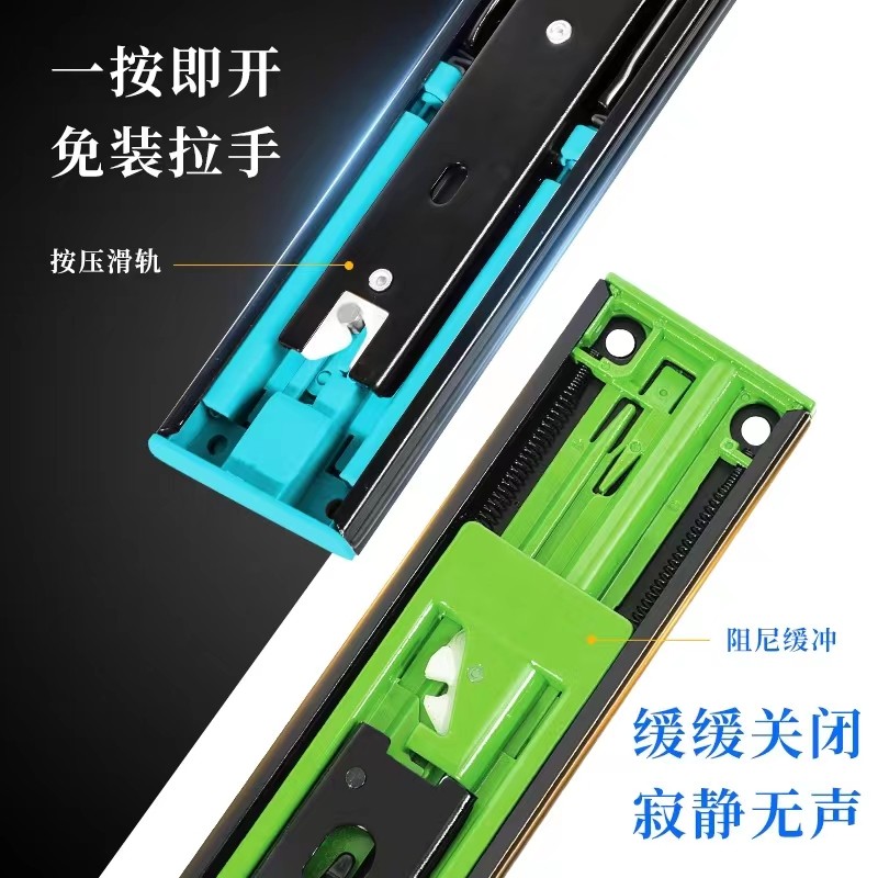 Perilon slide rail damping buffer rail slide rail cupboard rail drawer track thickened silent rebound three-section track-Taobao