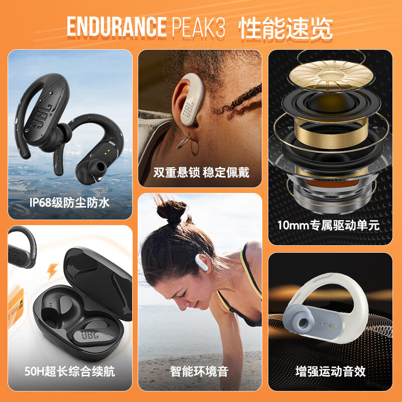 (self-employed) JBL ENDSURANCE PEAK3 True wireless Bluetooth headphone movement running anti-sweat hanging ear style-Taobao