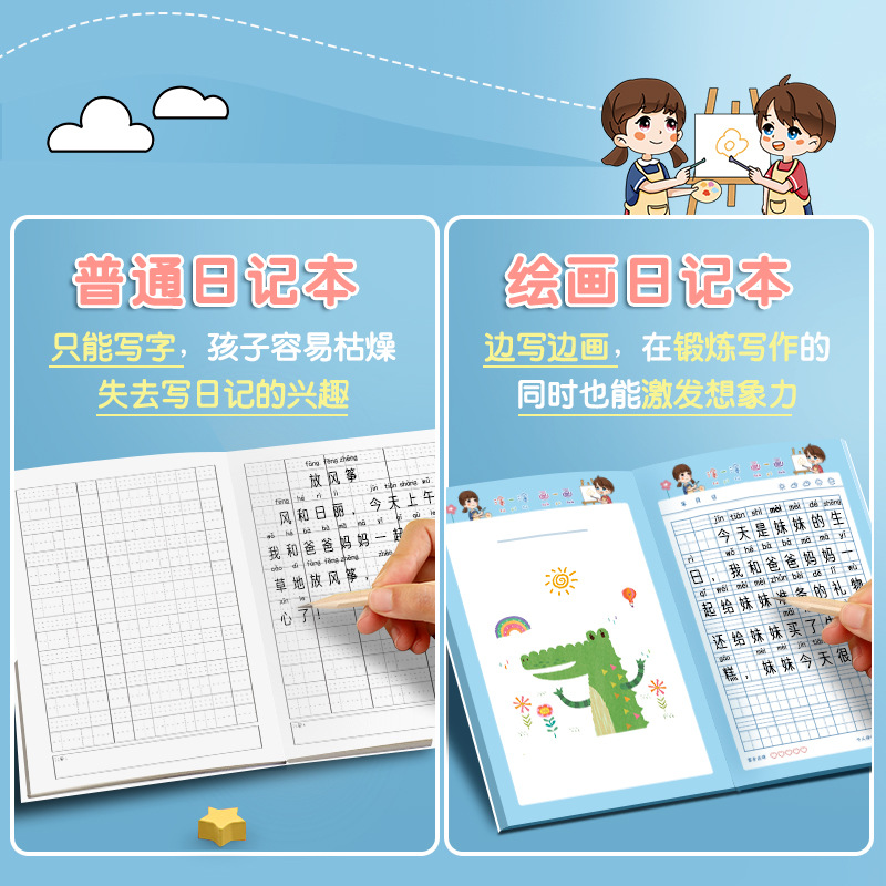 A5 Painting Day Mark this kindergarten Primary school Primary school Primary 1 looking at the picture Write a child text picture picture book a painting of the day-Taobao