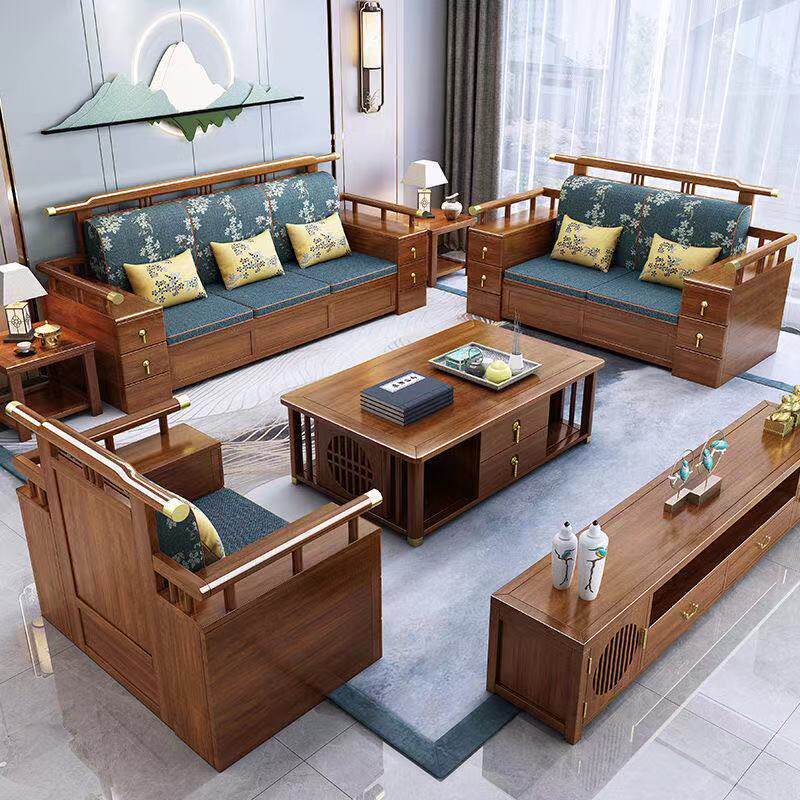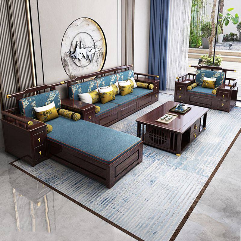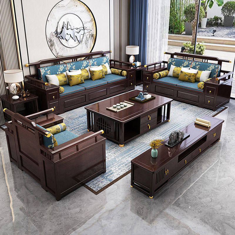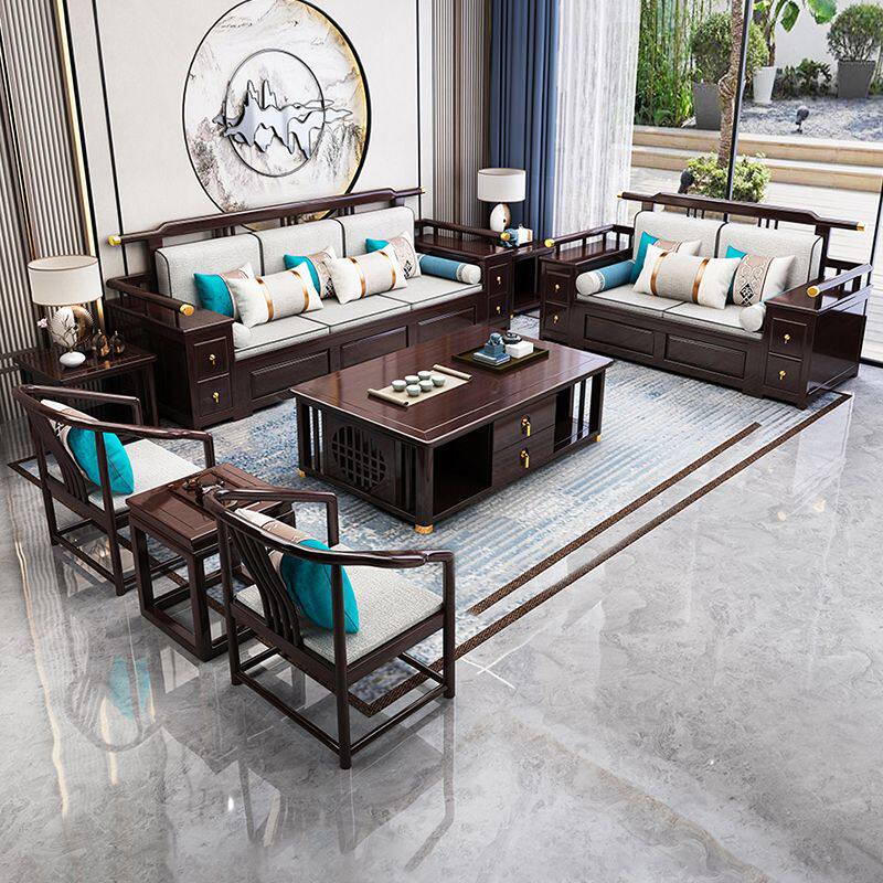 New Chinese style all solid wood sofa large apartment sofa living room combination Chinese style villa furniture winter and summer dual-use sofa