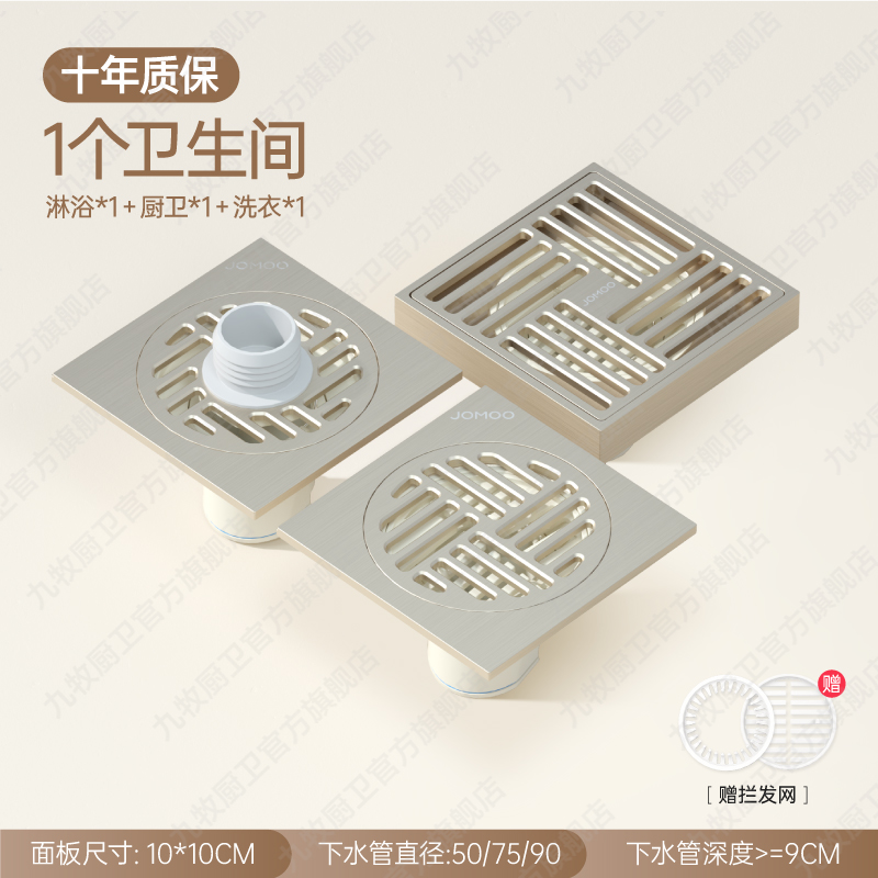 Nine Pastoral Bathroom Official Net Deodorant Floor Drain Toilet Universal Washing Machine Floor Drain Strip Full Copper Anti-Insect Return Water-Taobao