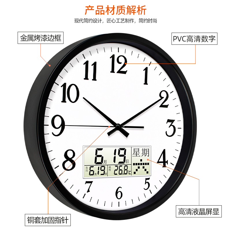 12-inch punch-free fashion simple living room wall clock mute bedroom quartz clock calendar office clock home