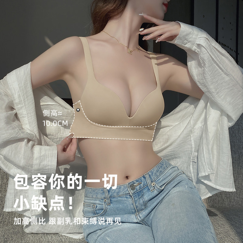No-scratches thin undergarments female big breasts slim 2023 Summer new Sexy shrink breasts Drooping Bra-Taobao