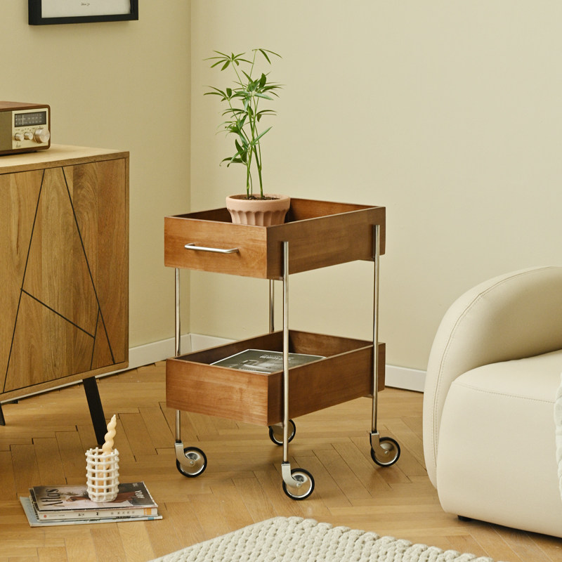 NASO that medieval stainless steel small cart removable double shelf log living room sofa edge a few-Taobao