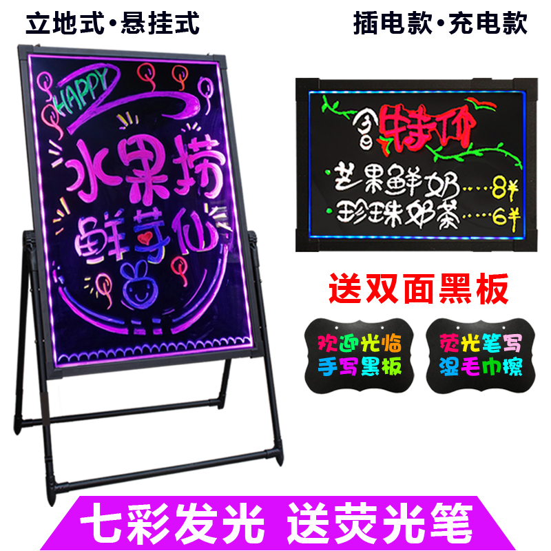 Commercial Luminous Fluorescent Plate Billboard Small Blackboard Shop With Doorway Flash Chalkboard Led electronic hanging wall charging pendulum showering Milk Tea Shop Luminous Propaganda Beauty Chia Store Display Cards-Taobao