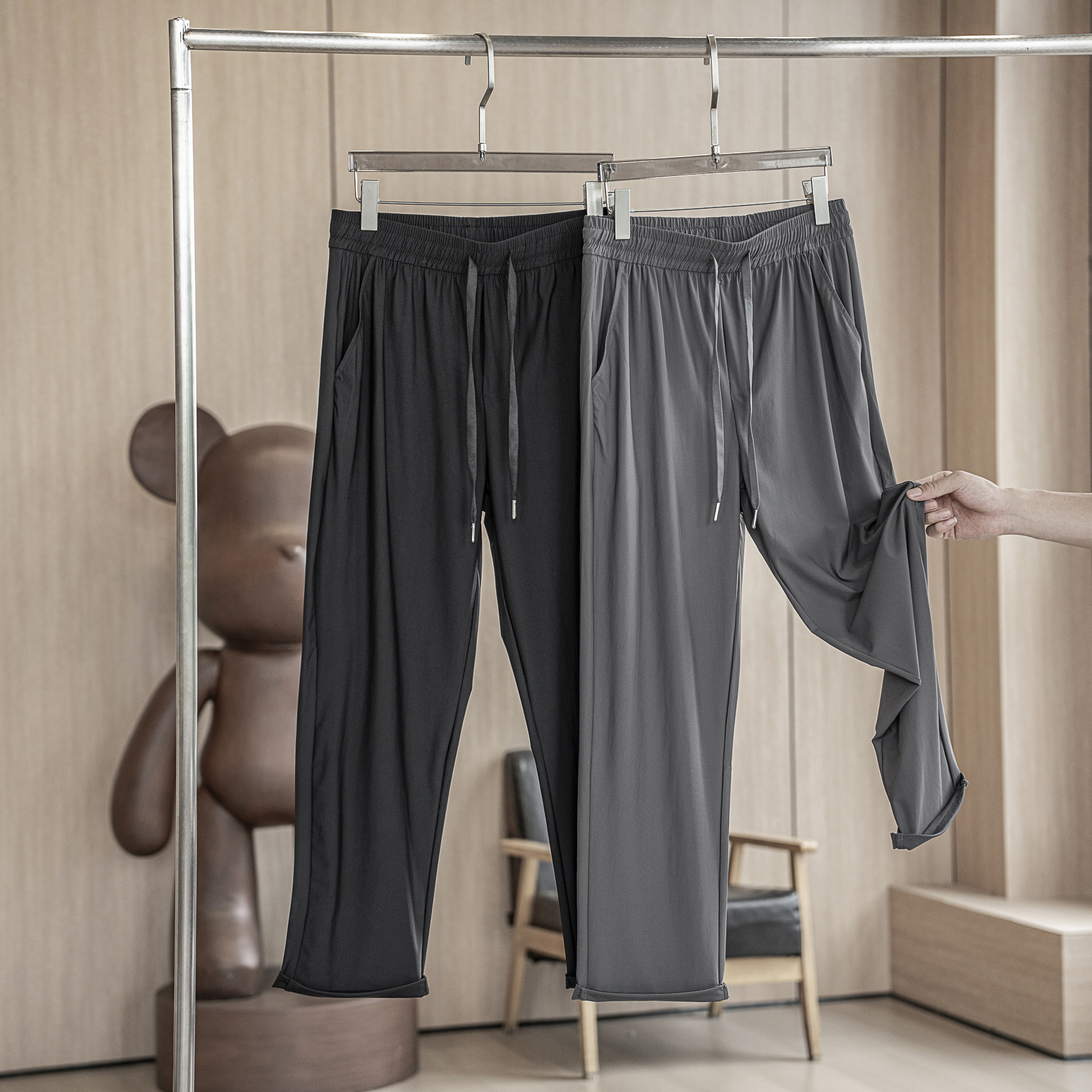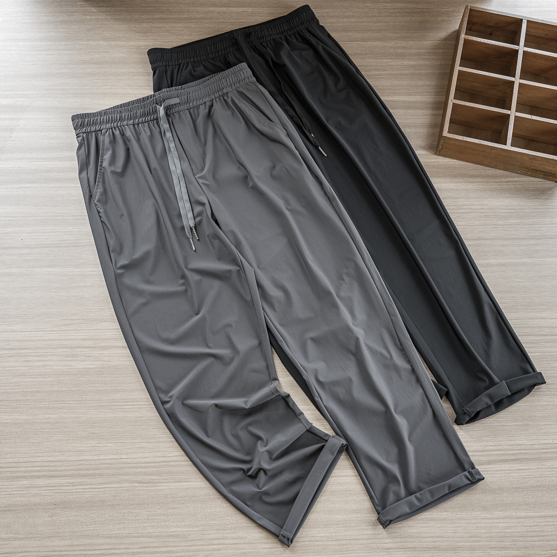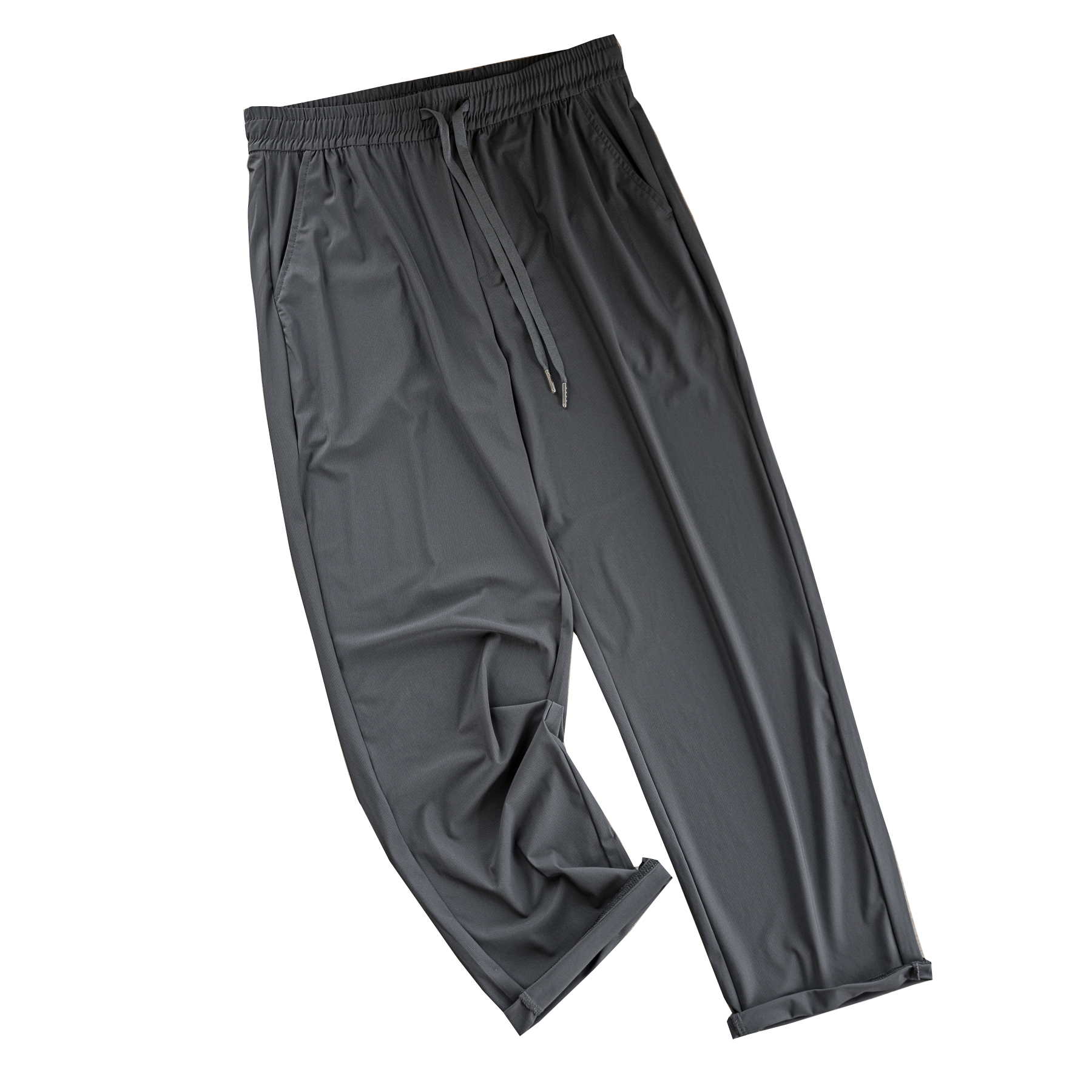 Ultra-smooth ice silk cool feeling textured four sides elastic small straight cylinder smooth and breathable speed dry loose sport long pants-Taobao