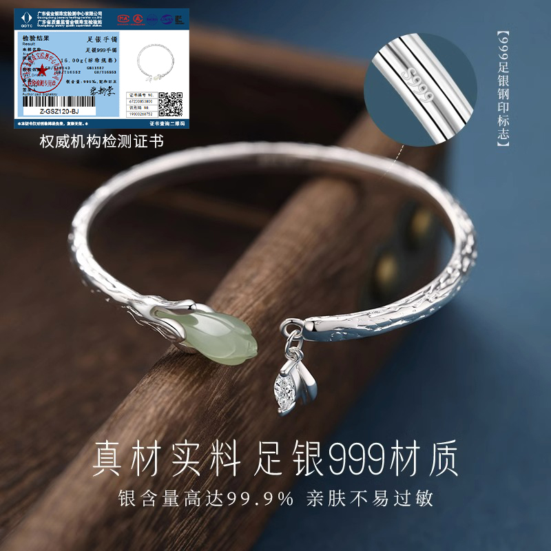 China Gold Treasure Silver Flowers Pure Silver Bracelet Women's 999 Foot Silver Bracelet Young silver Jewelry Gift Girlfriend-Taobao