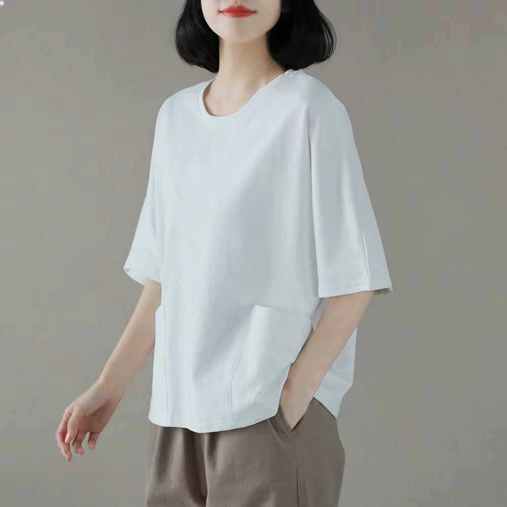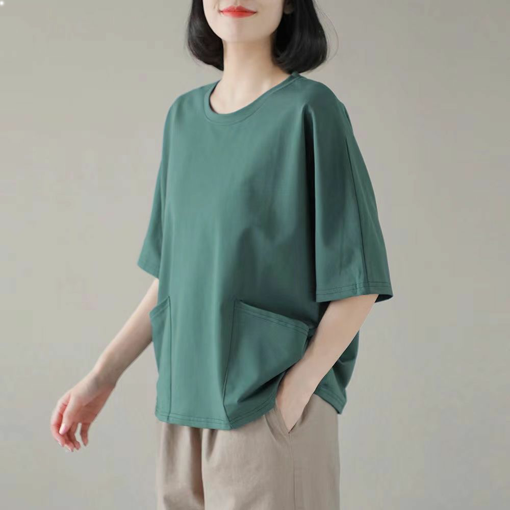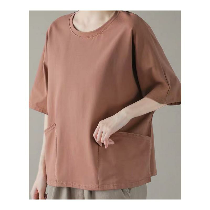 New summer large size loose round neck t-shirt fat sister cotton short-sleeved t-shirt literature and art casual cotton top women