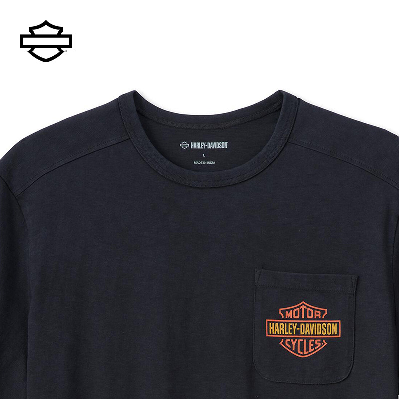 Haredavidson Whiplash Chest Pocket T-Shirt Men's Motorcycle Riding Summer Casual Round Collar Retro Short Sleeve-Taobao