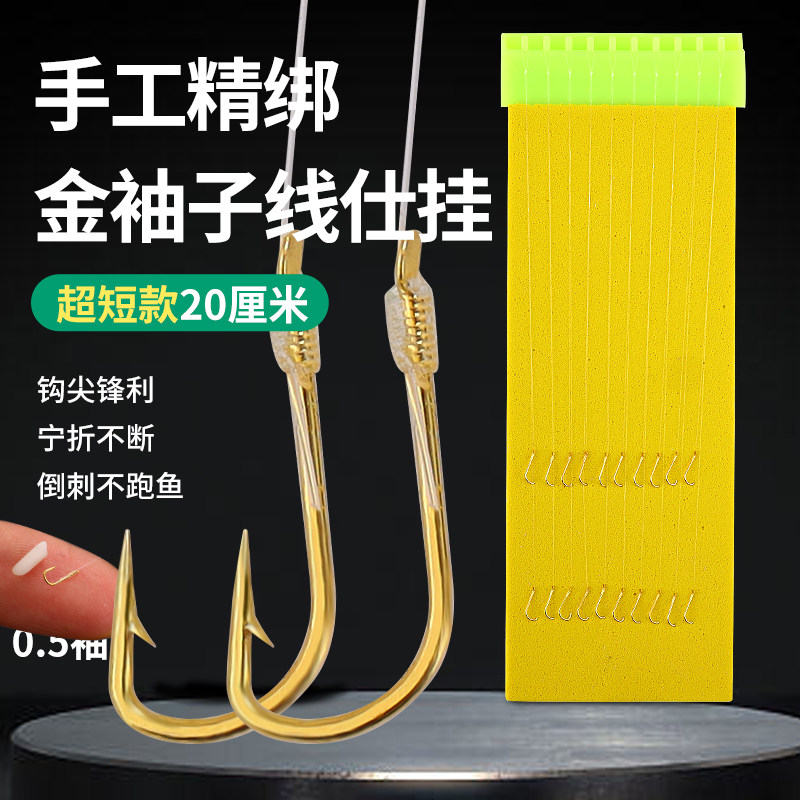 short sub-wire golden cuff fish hook tied with double hook finished product suit fishing cuff gear wild fishing raft fishing stream white strip hook-Taobao