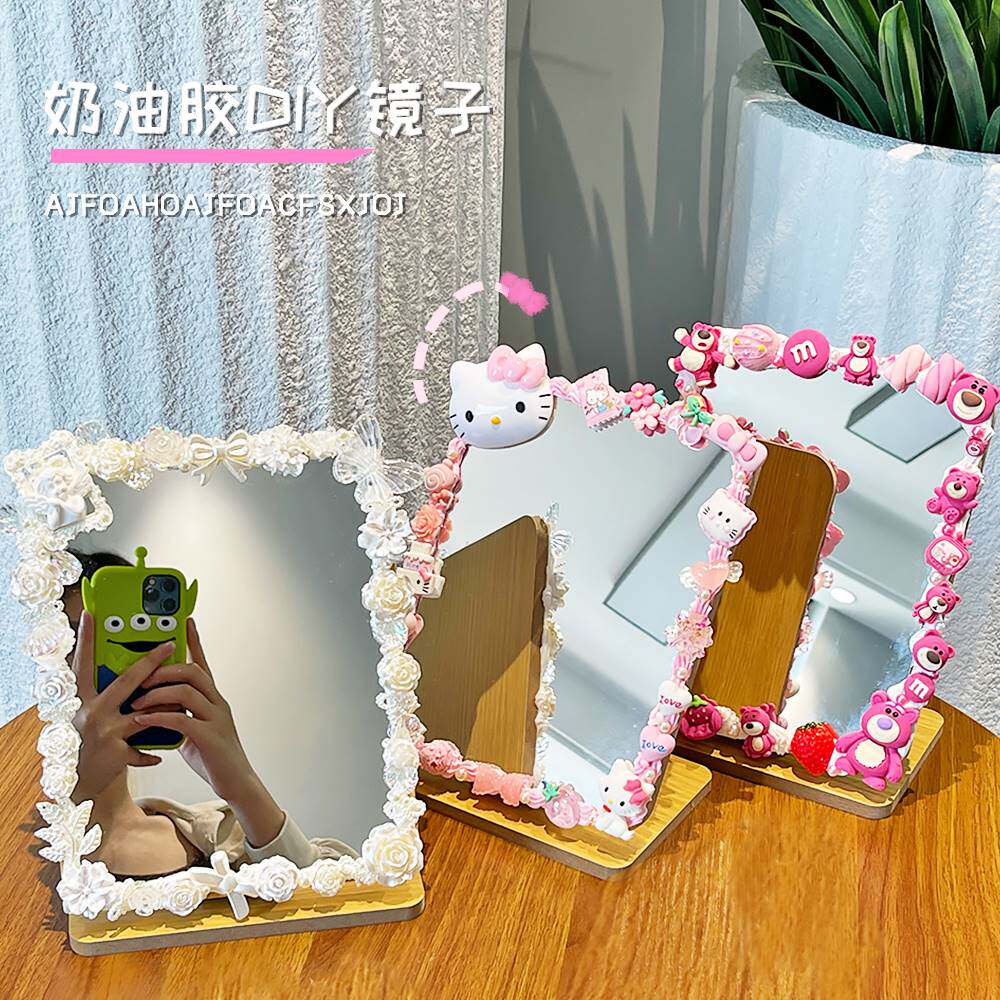 Rose Red Strawberry Bear Mirror Bowknot White Cat Mirror Big Cat Mirror Lollipop Superman Mirror Single Vertical Ear Bunny Mirror Milk Tea Bear Mirror Butterfly Sea Mirror Rose Red Stupid Bear Mirror