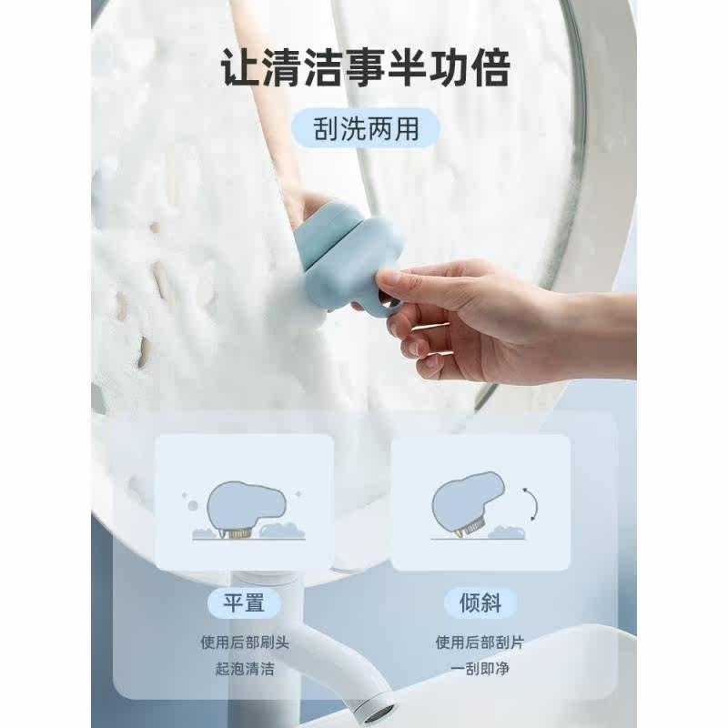 One blue cleaning brush, one white cleaning brush, one yellow cleaning brush, two blue and white cleaning brushes, two yellow and blue cleaning brushes, two yellow and white cleaning brushes