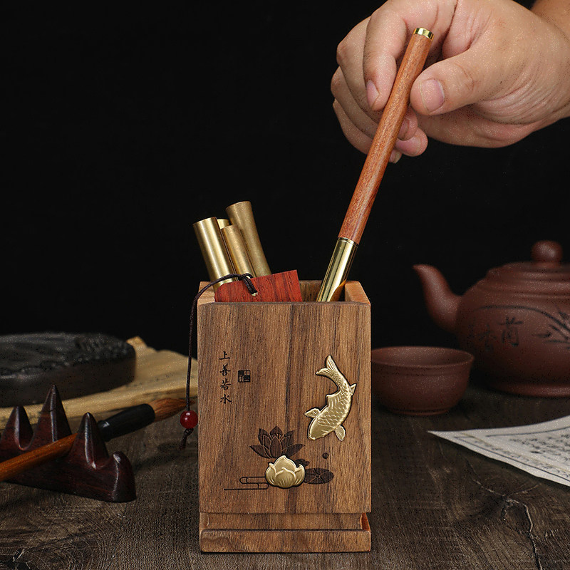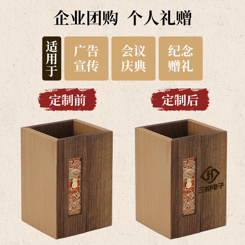 Solid Wood Pen Holder Containing Box Custom Teacher's Section Gift Pen Bucket Lettering Logo Printed Logo Black Walnuts Beech Wood Minimalist Style Office Desktop Swing Piece Gufeng Creative Minimalist Design Sense Book Room-Taobao