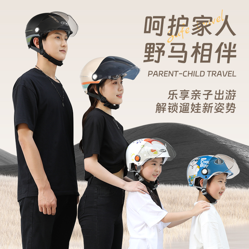 Wild horse electric motorcycle Children's helmet Summer 3C certified parent-child semi-helmets electric bottle car male and female safety helmet-Taobao
