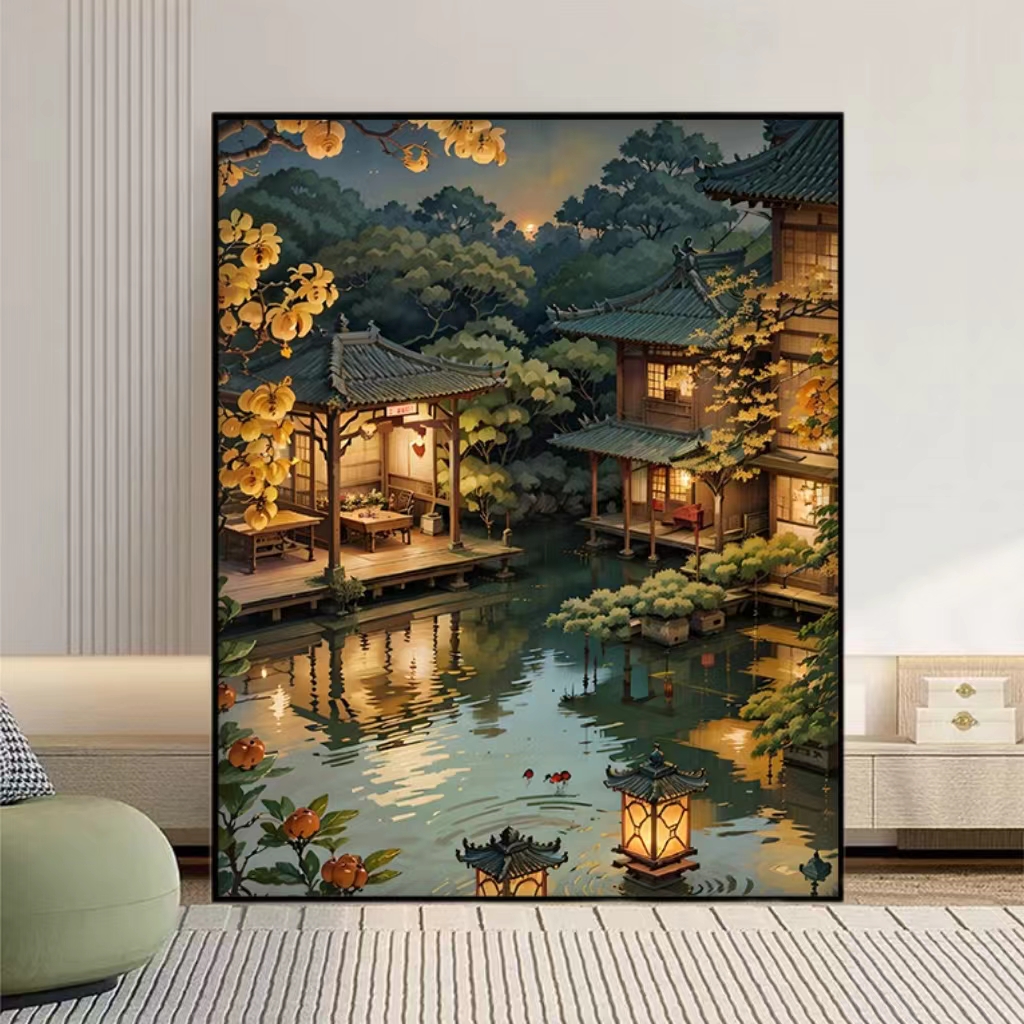 Ancient rhyme loft digital oil painting diy hand filled with painted antique wind building national wind decorative propylene oil color hanging painting-Taobao