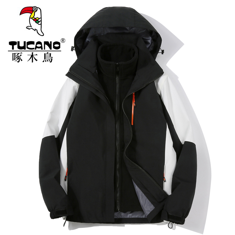 Woodpecker outdoor submachine clothing male and female three-in-one detachable winter thickened waterproof and breathable mountaineering warm jacket-Taobao