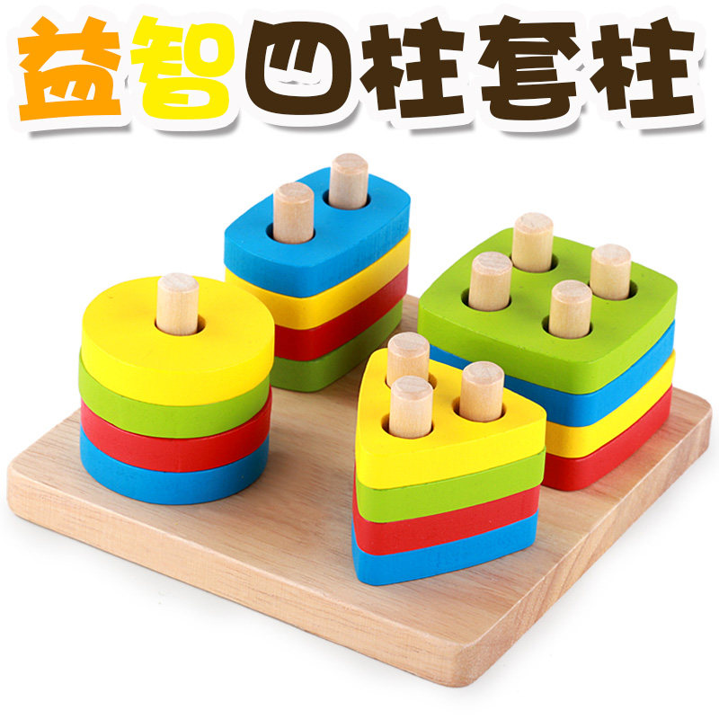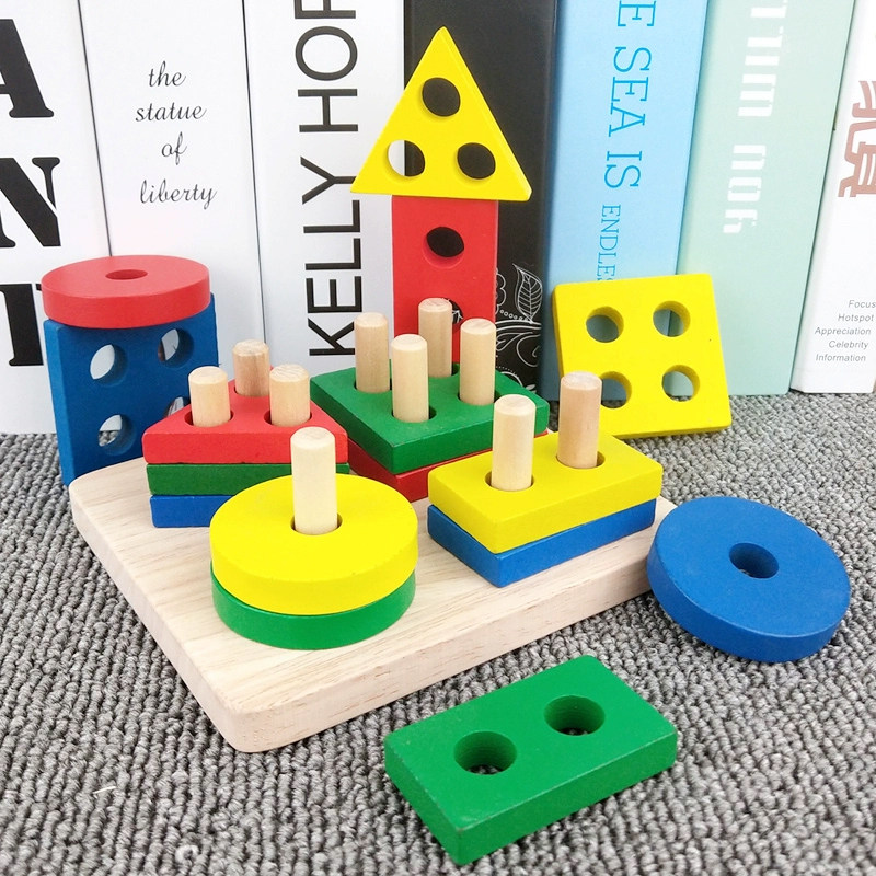 Mon Geometric Shapes Pairing Teaching Aids Four Sets Columns Infants Early Education Enlightenment Baby Puzzle Toys 1-2 Year Old Building Blocks 3-Taobao