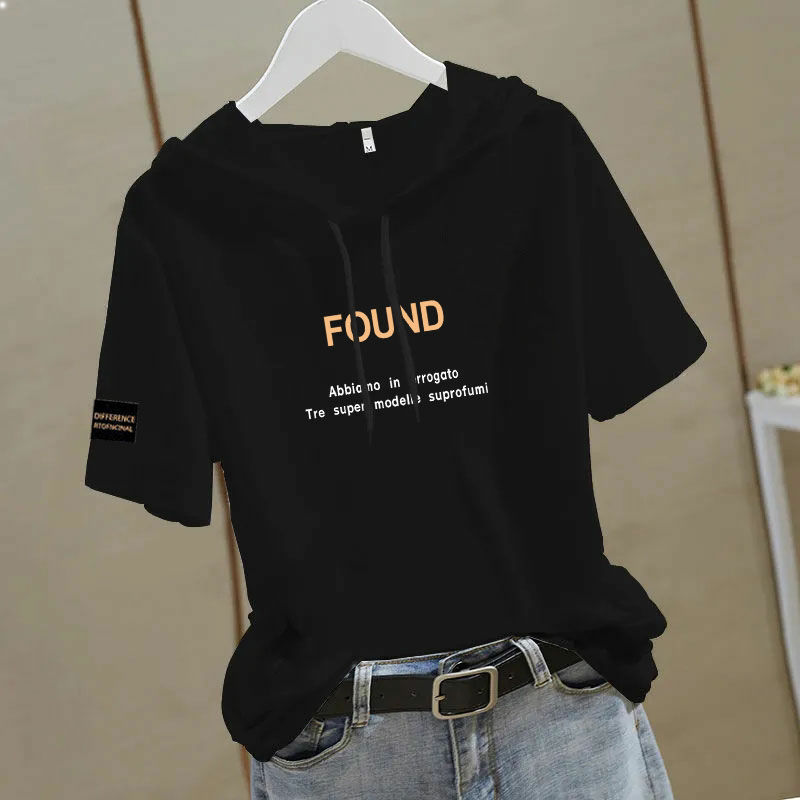 All-match cotton short-sleeved t-shirt women's summer new Korean version loose casual ins top hooded pullover sweater tide