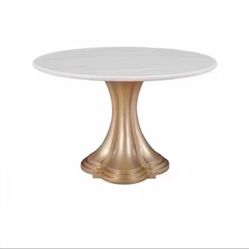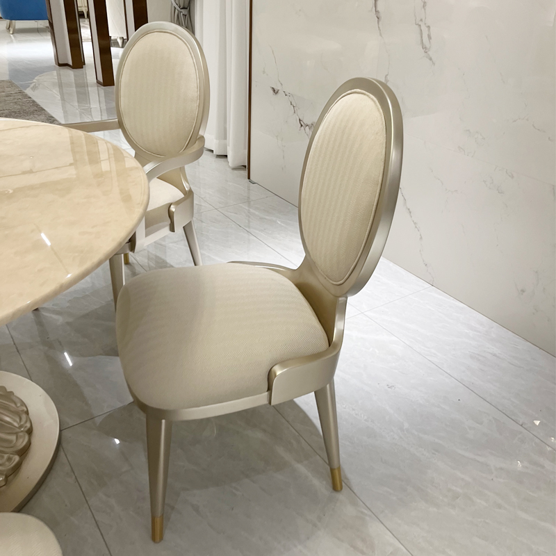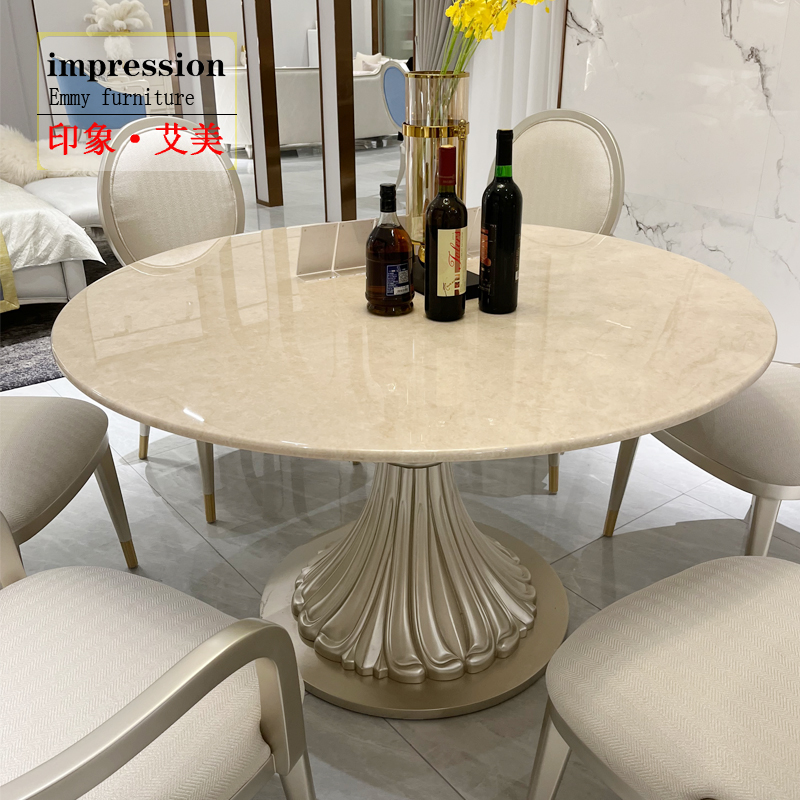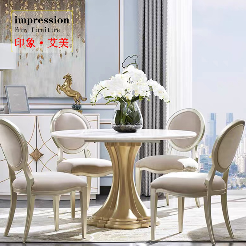 American solid wood round dining table and chairs combined light extravagant marble dining table villa high-end living room French style furniture custom-made-Taobao