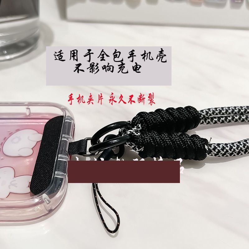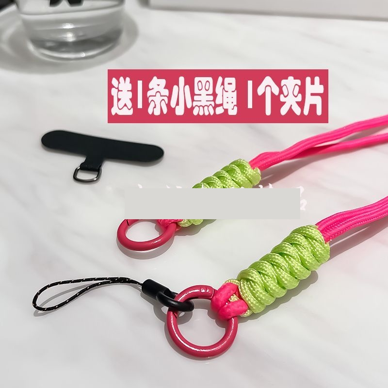 Collision Colour Double Rope Powder Blue Mobile Phone Sling Woman Money Creative No Hole Fixed Card Clip Mobile Phone Chain Slanted Pendant long-Taobao