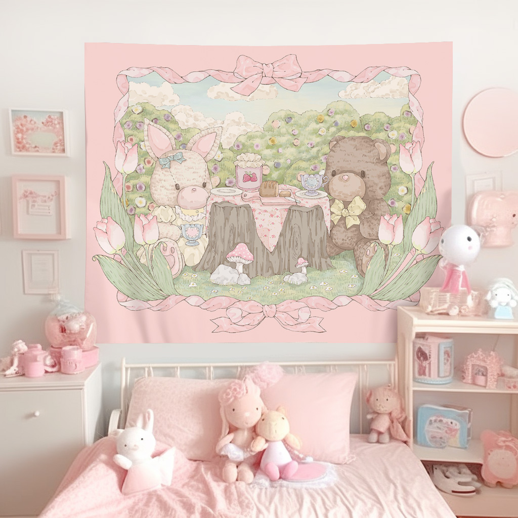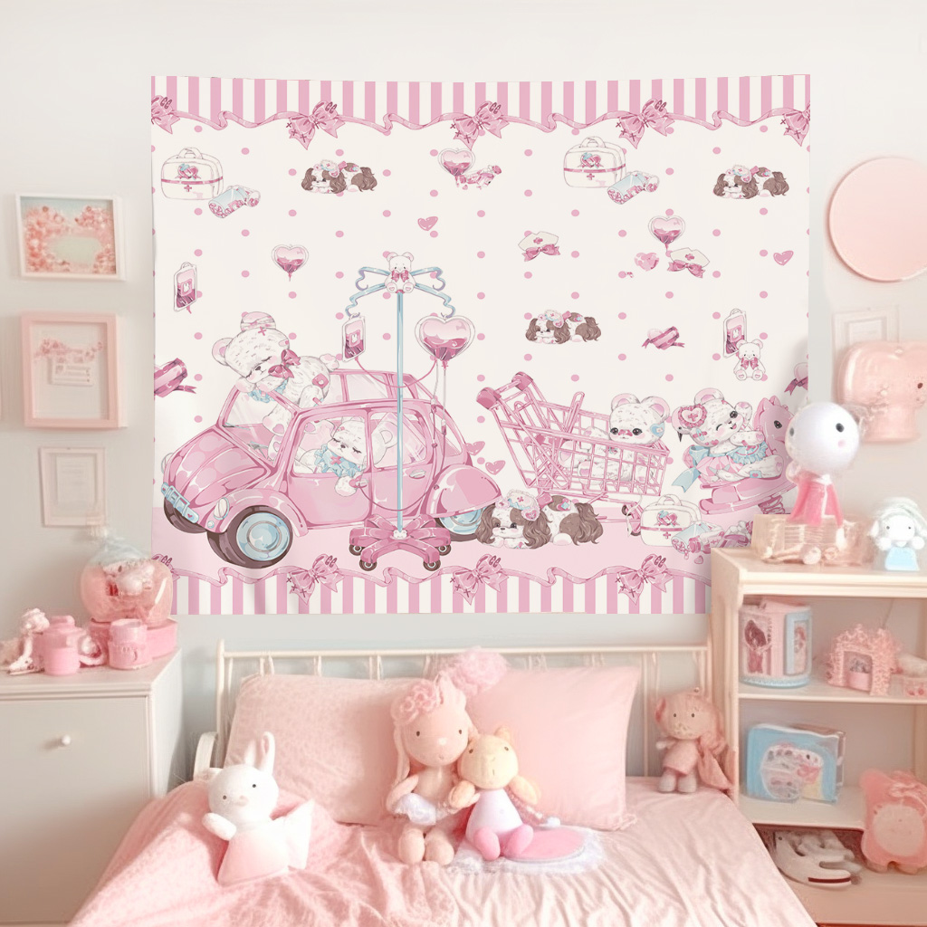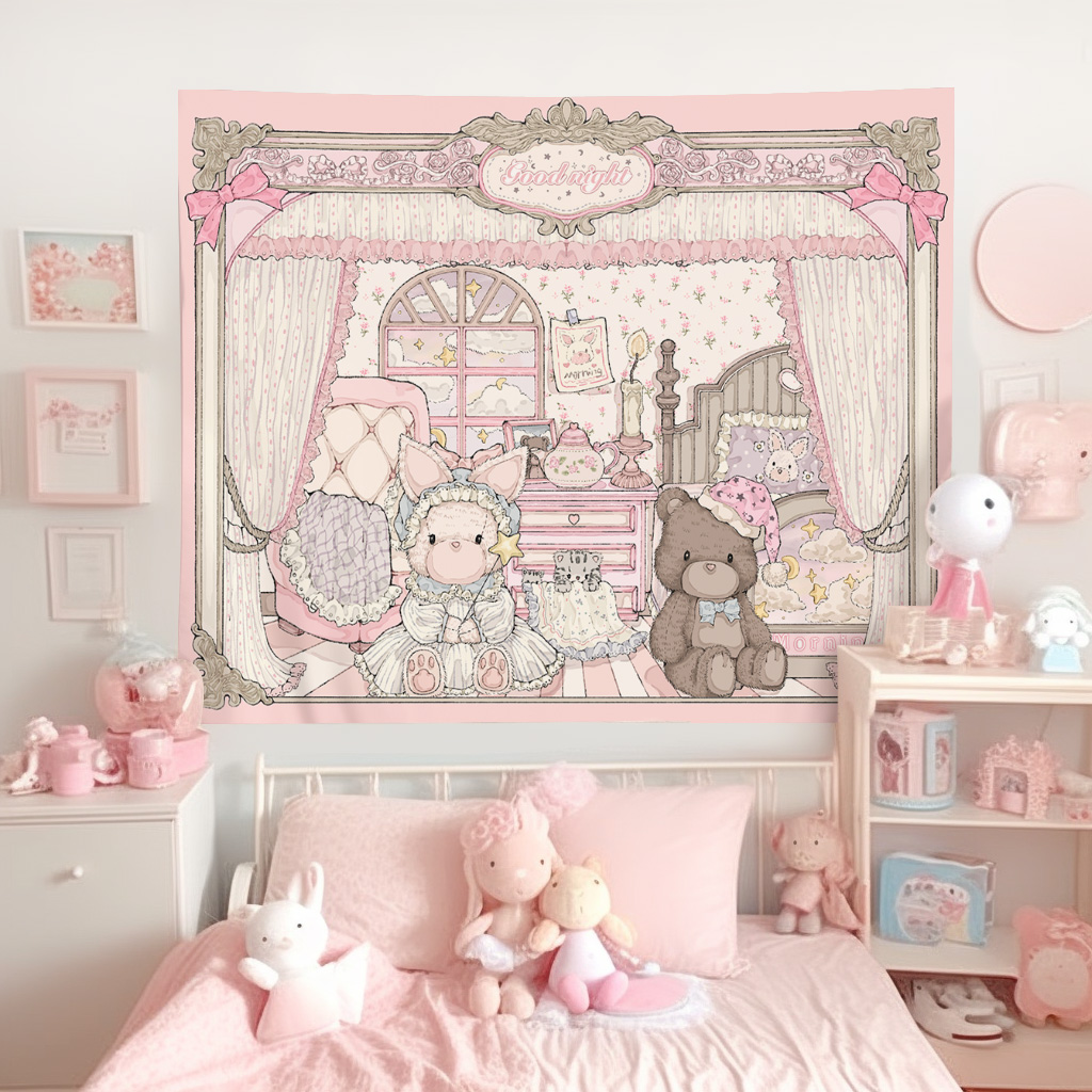 Young Girl Hearts ins Breeze Lorita Lori Bed Headboard Hanging Fabric Background Wall Cloth Cozy Lovely Lolita Wall Deco-Taobao