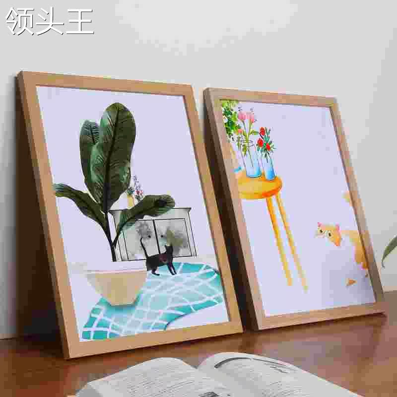 Large size wooden photo frame hanging wall photo wall 4k8k calligraphy rectangular display frame simple picture frame mounting