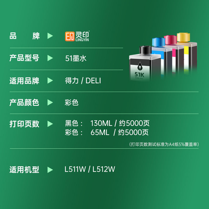 Apply the right-hand 51K ink Deli L511W Color wireless inkjet printer L512W multifunction integrated ink bin style fill 51C 51Y 51M ink juice home connection