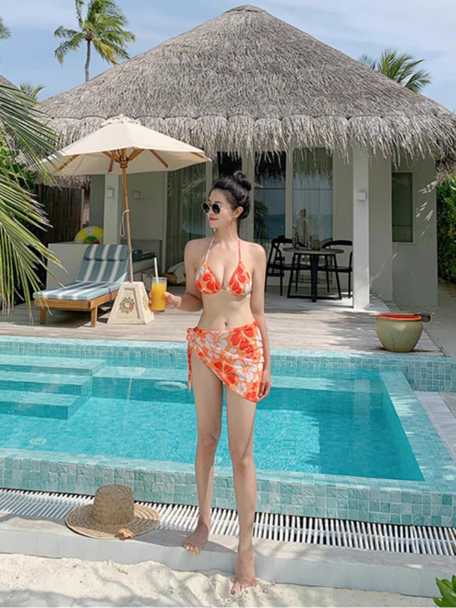 European and American fission hanging neck bikini swimsuit women's three sets sexy little breasts to woo seaside beach 2023 new-Taobao