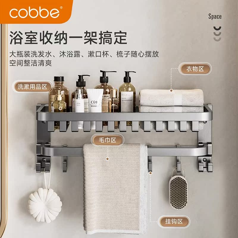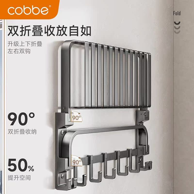 Cabé bathroom shelving towel rack free of punch toilet space aluminum gun grey folding bath towel rack 875-Taobao