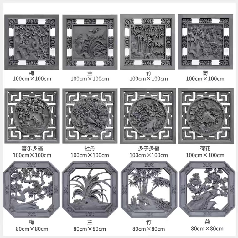 Hollowed-out Brick Carved Hollowed-out Window Sector Melan Bamboo Chamomile Wall Through Window Chinese Flower Window Yard wall Decorative Pendant Flower Window-Taobao