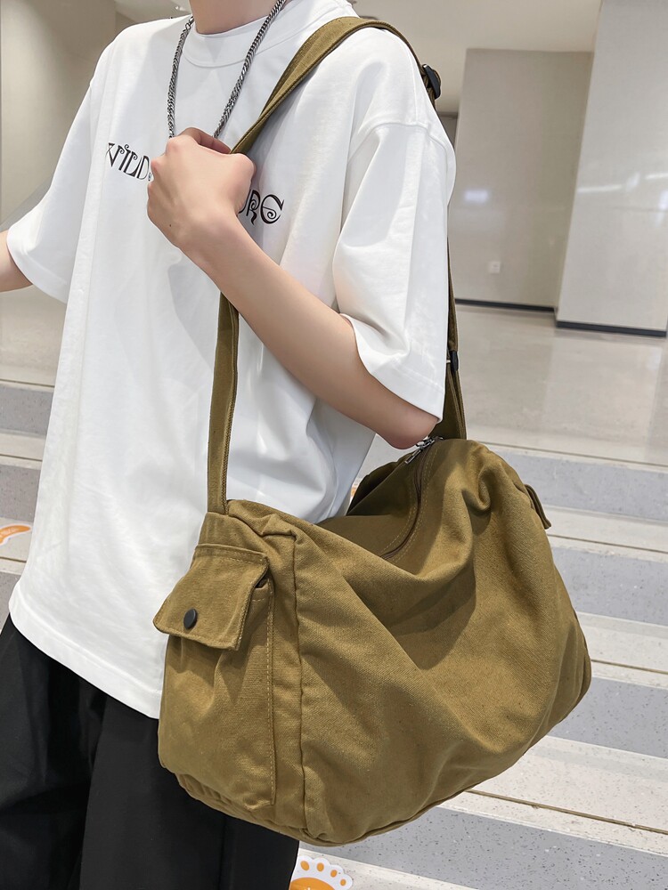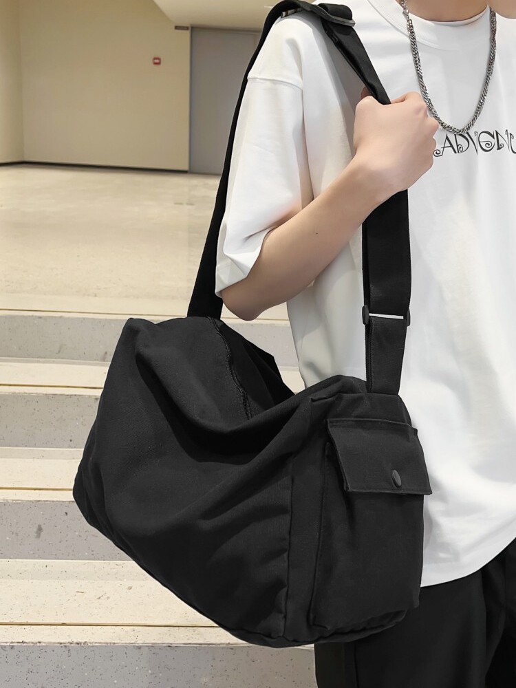 Large Capacity Retro Canvas Slanted Satchel Male Backpack Day Department Casual Mailbag Student Single Shoulder Bag Travel Commuter Bag-Taobao