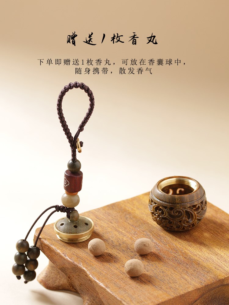Sachet men's portable antique green sandalwood sachet ball mobile phone chain lanyard aromatherapy decoration pendant can be opened