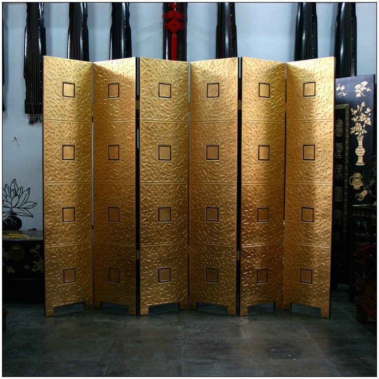 Yangzhou Lacquer Engraving Lacquer Dark Carved Full Stick Gold Sixfold Screen Xuanguan Partition Customize New Classical Lacquer Art Home Decoration