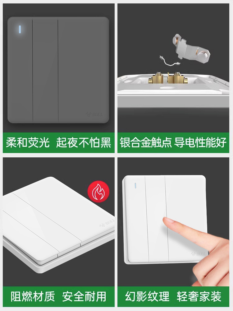 Bull Three Open Multi-Control Midway Switch Multi-Link Triple Switch Home 3 Position 86 Type Double Control Button Concealed panel-Taobao