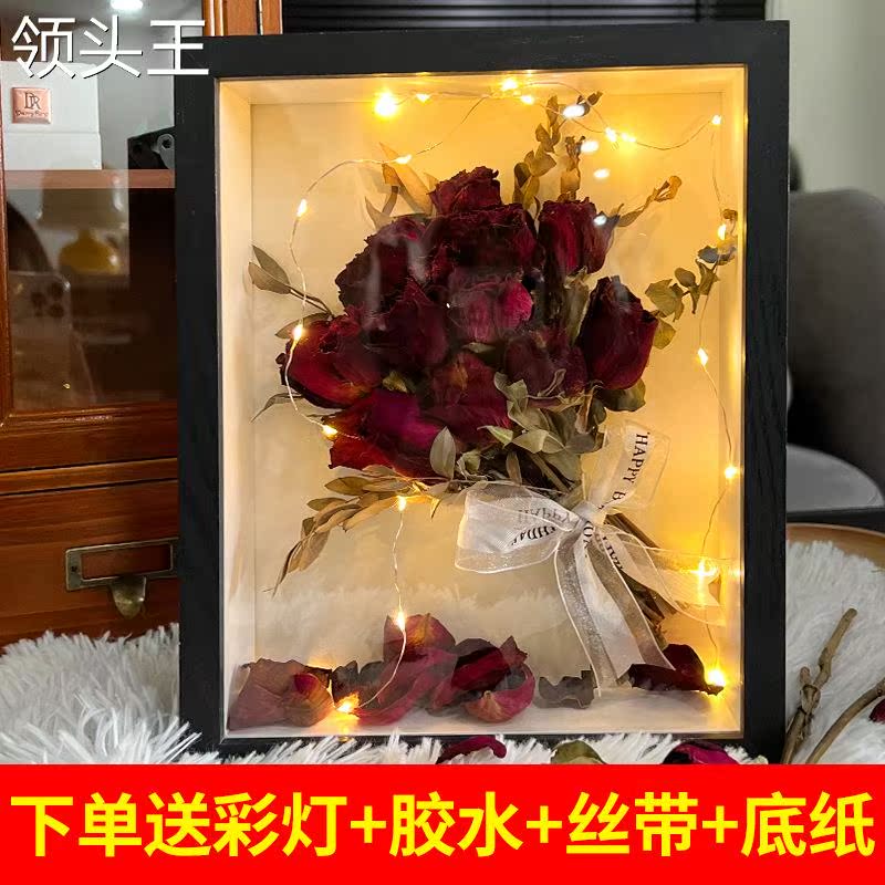Wooden rose dried flower photo frame three-dimensional hollow specimen frame diy handmade butterfly insect photo frame table frame