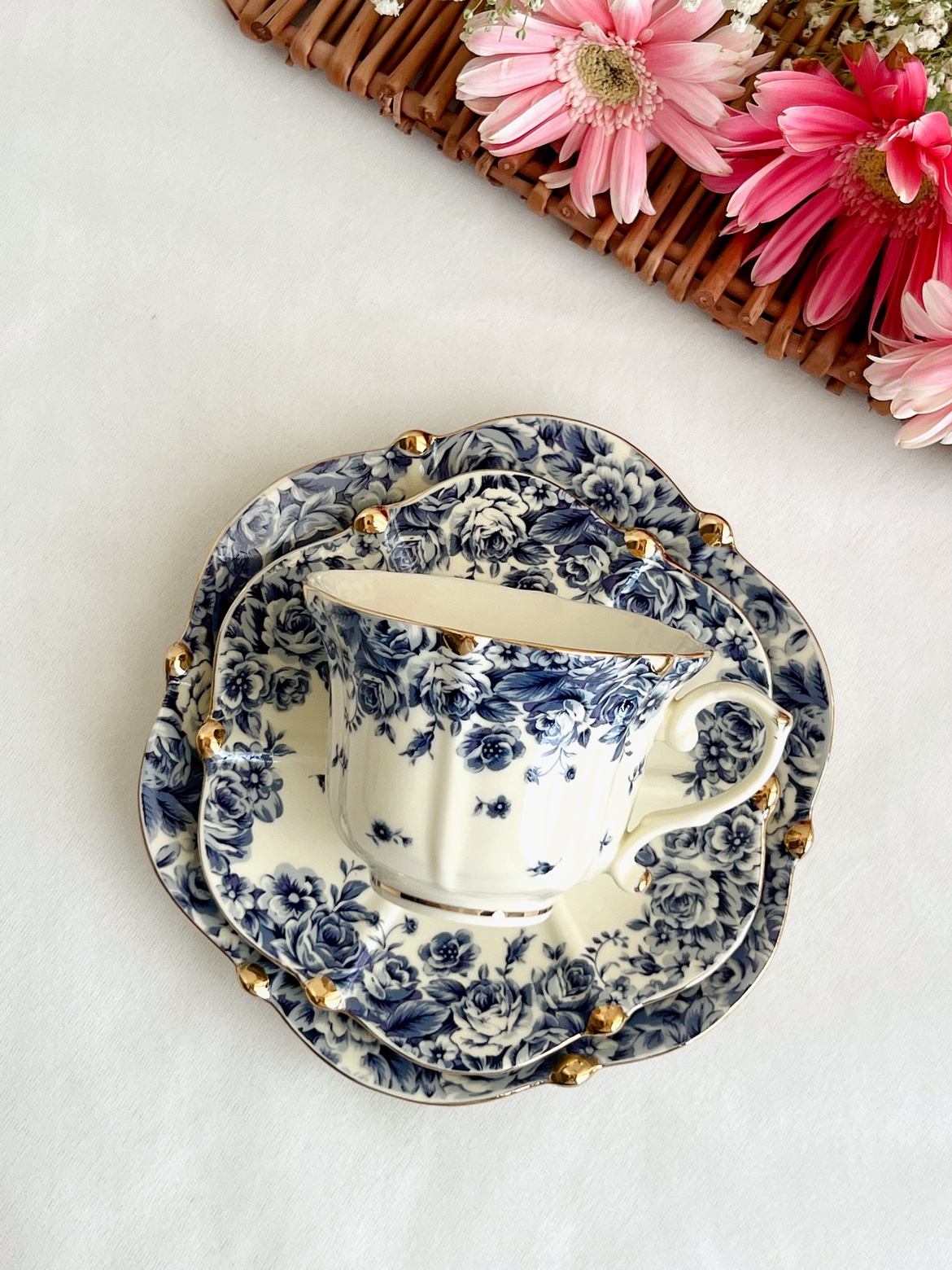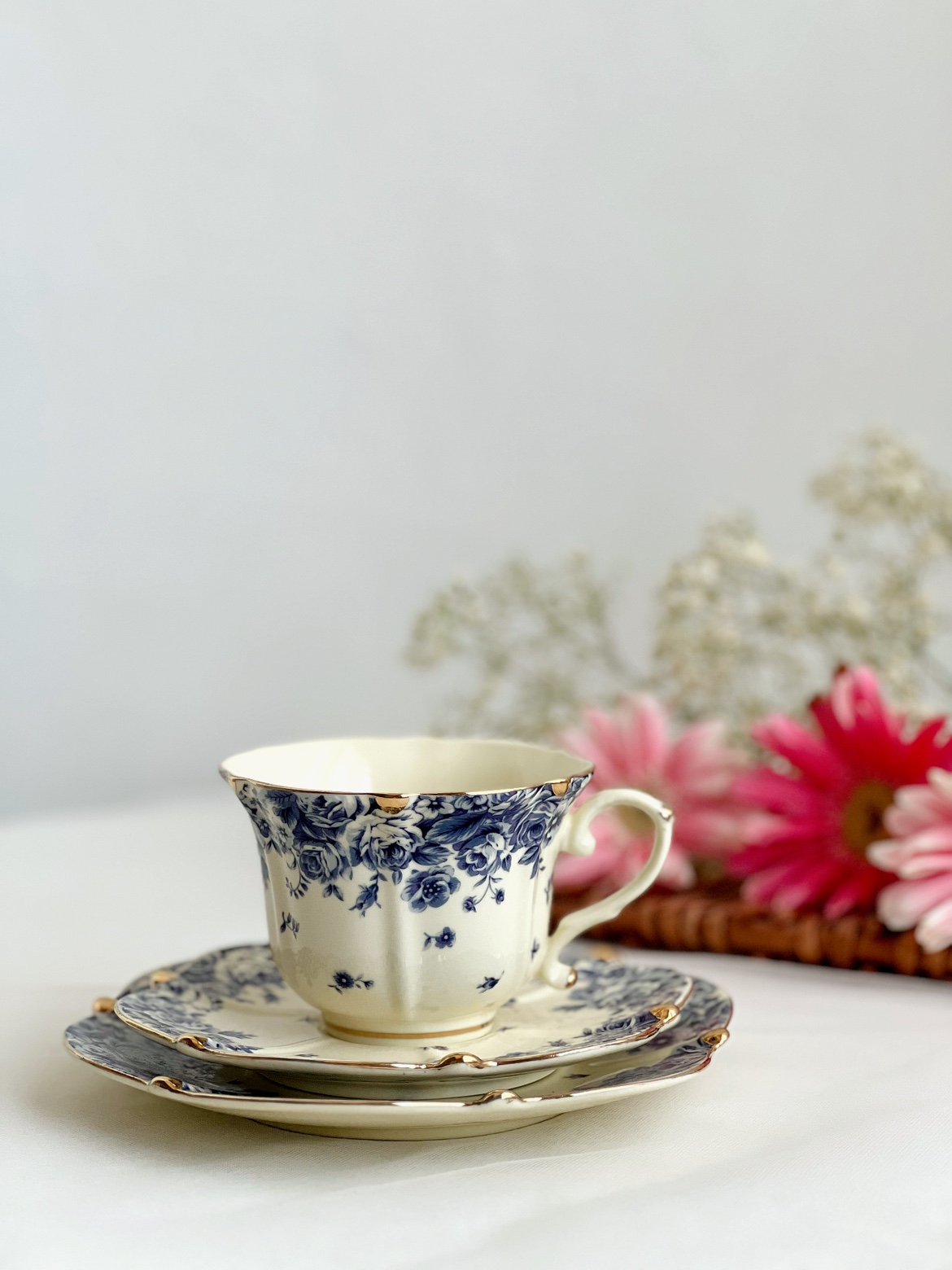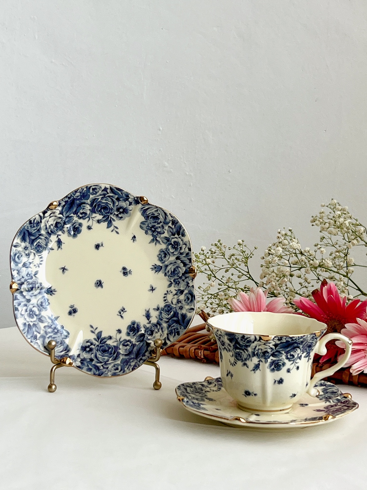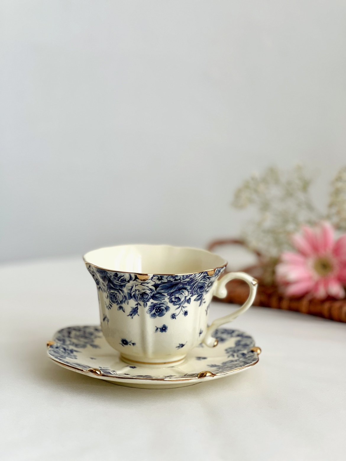 Top-secret Export Single European Palace Temperament Cream Yellow Undertone BLUE FLOWER CERAMIC PLATE COFFEE CUP 250ml-Taobao