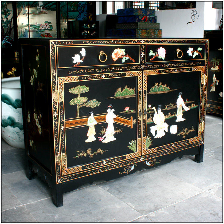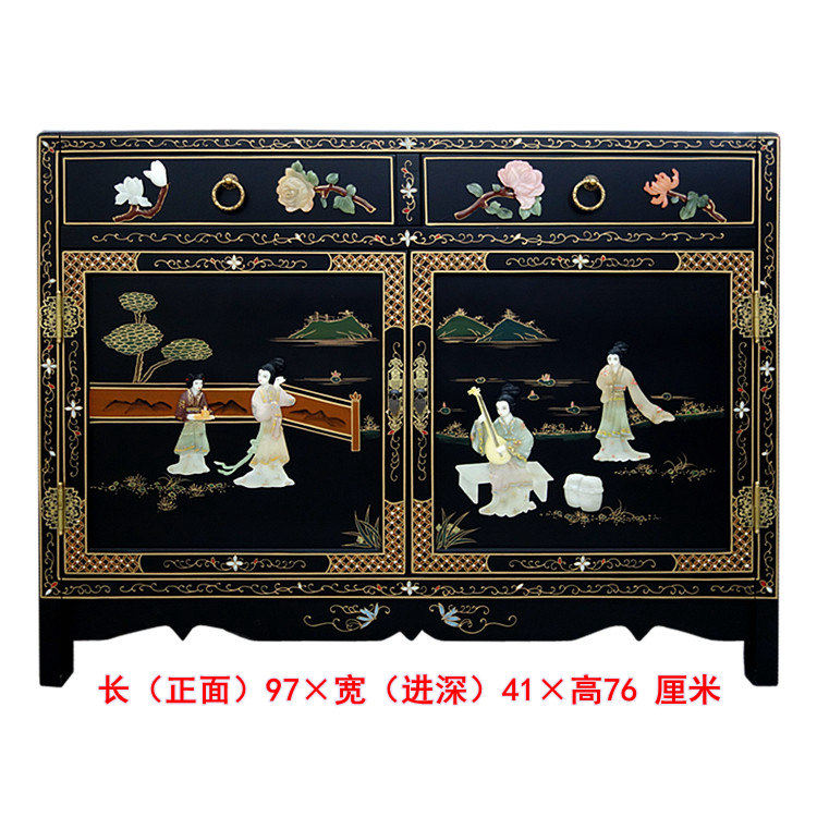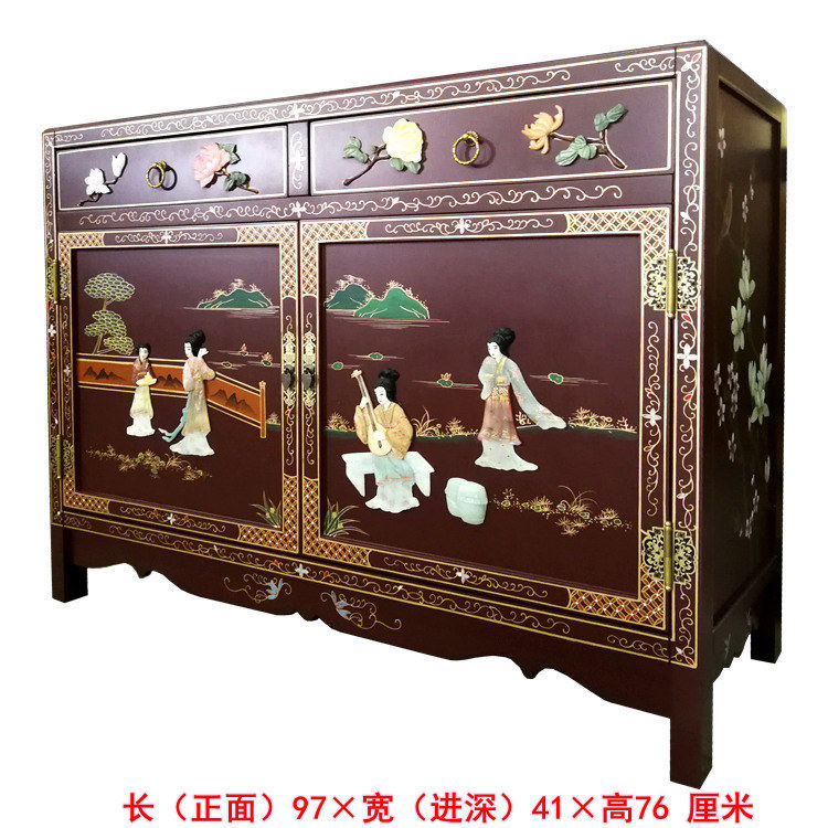 Painting Artificial Bone Mounted Mercury Cabinet Dining Cabinet Yangzhou Painter New Chinese Classical Home Solid Wood Furniture