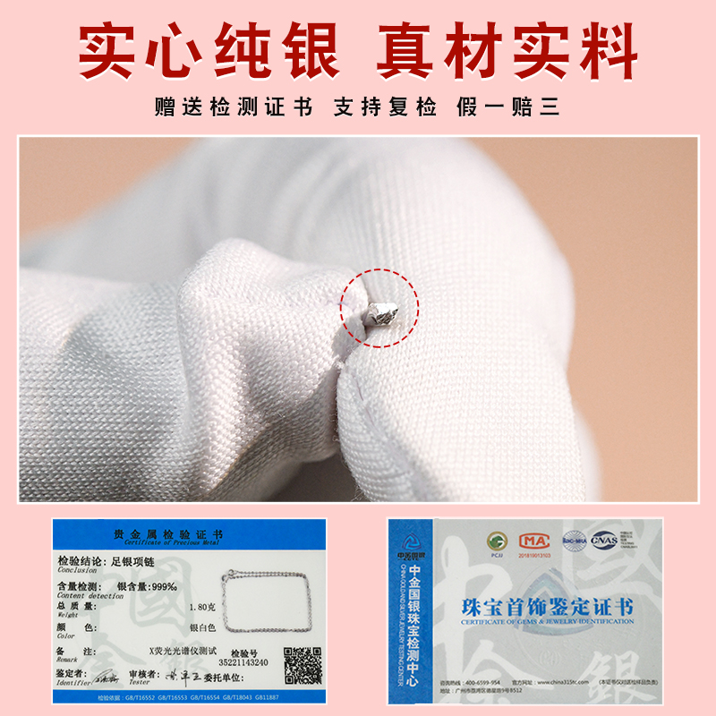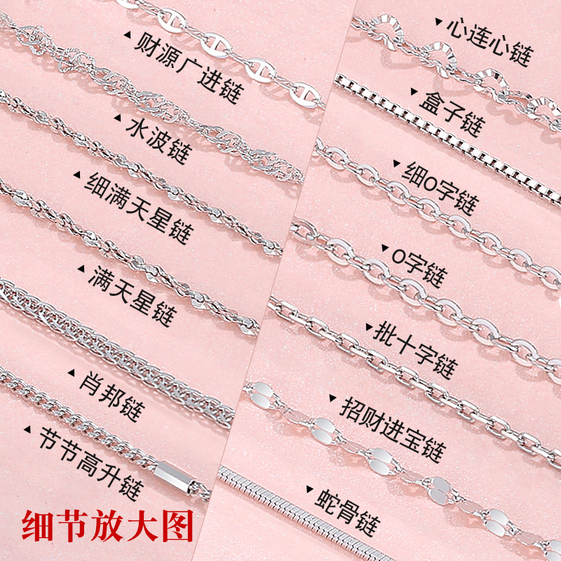 999 pure silver vegetarian chain foot silver no pendant silver decorated necklace woman 925 silver chain son lock bone chain hanging rope naked chain full of stars-Taobao