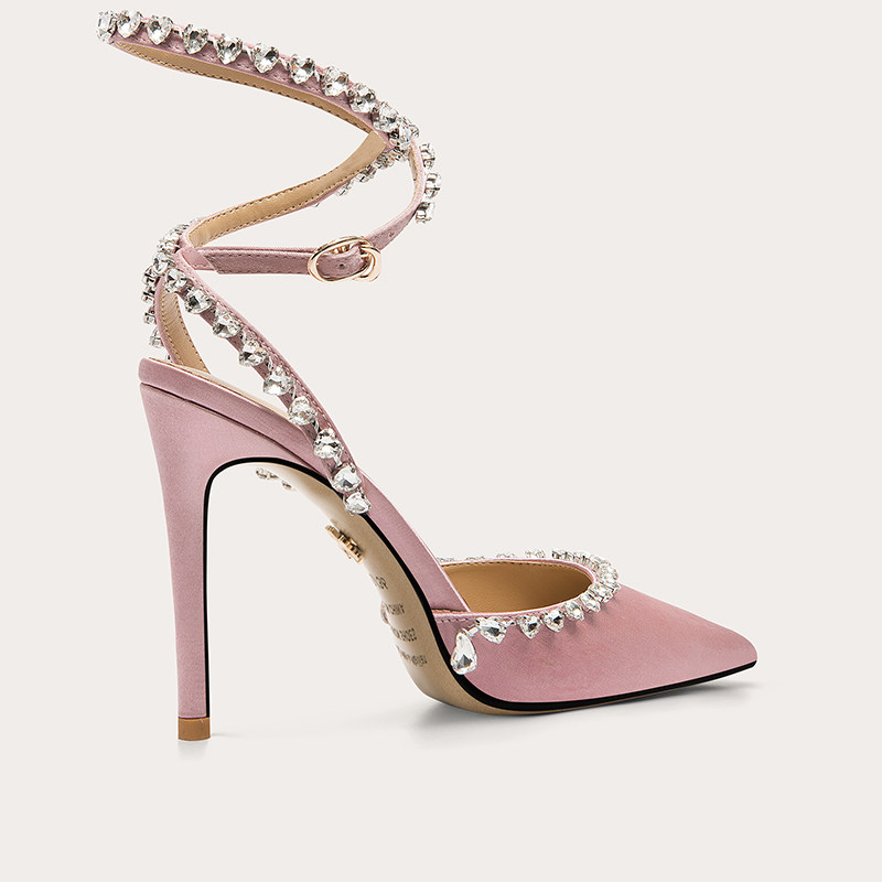 Lily Wei (gentle maiden) black Baotou sandal sandal satin diamond with high heel shoe size 41-43-Taobao