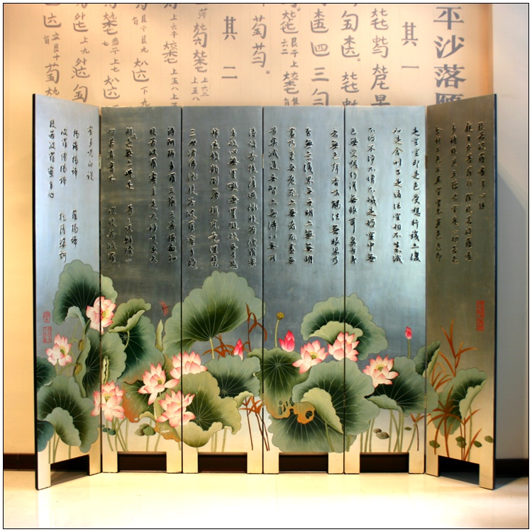 Lacquer art engraving appliquer with silver painted lotus heart warp Lanting order screen partition Yangzhou lacquer ware New Chinese home decoration