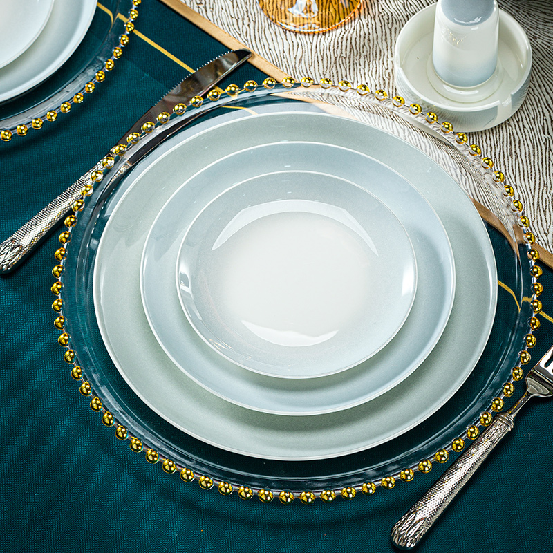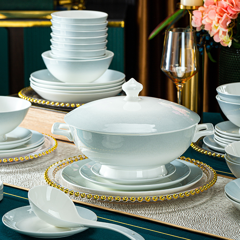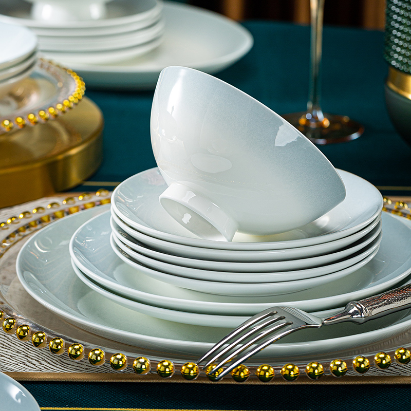 Jingdezhen Bone China Porcelain Tableware Home Ceramic Ware Bowl of Dish Suit Glaze Color Light Lavish Gradient Grey Wedding Gift-Taobao