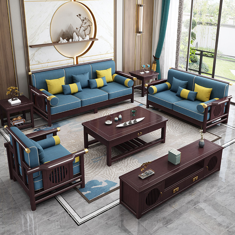 Zen living room new Chinese wooden plus cloth sofa coffee table TV cabinet combination classical light luxury winter and summer dual-use small apartment