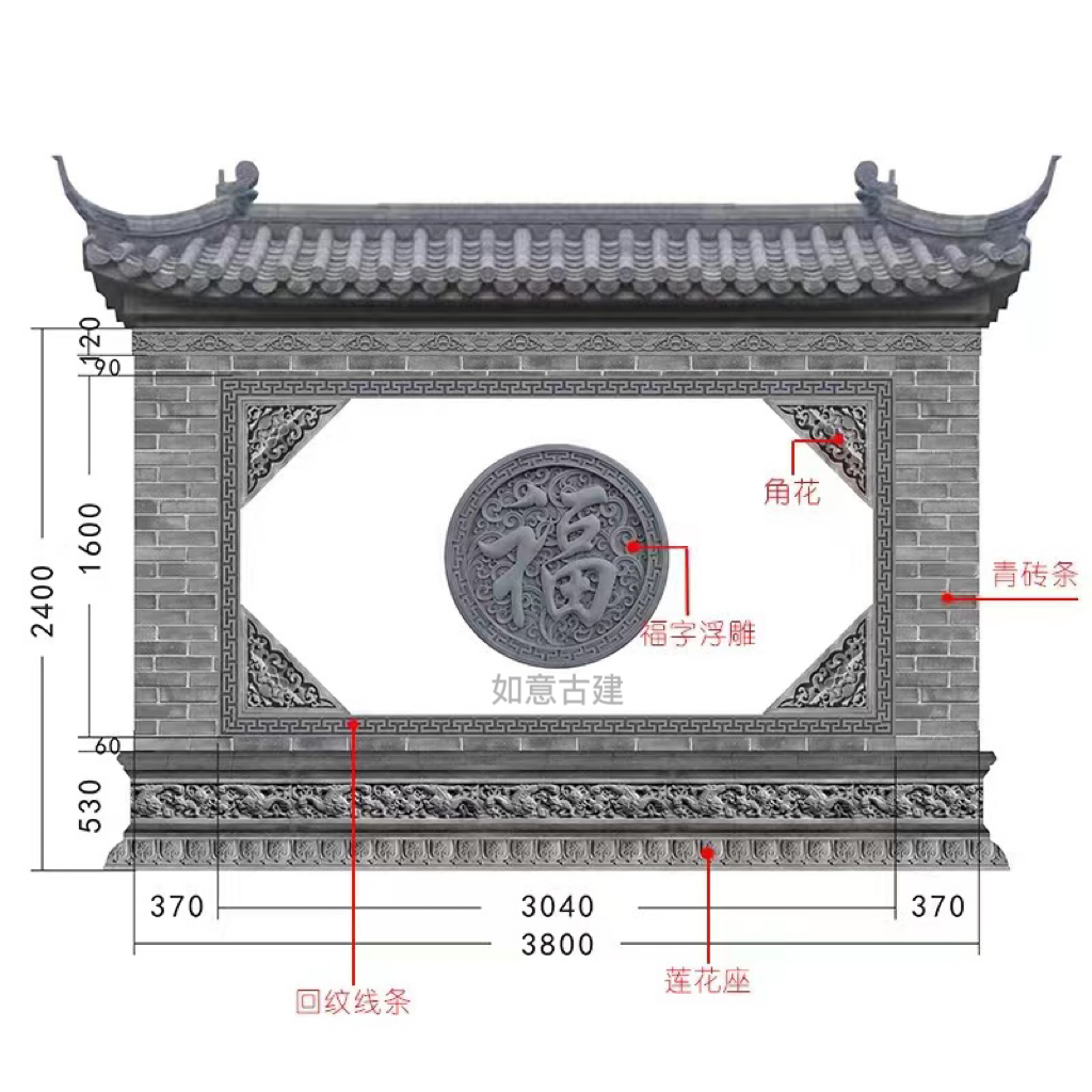 Fu Character Brick Carving Round Imitation Antique Chinese Style Courtyard Shadow Wall wall Wall Background Greet wall Emblem Relief Wall Decoration-Taobao