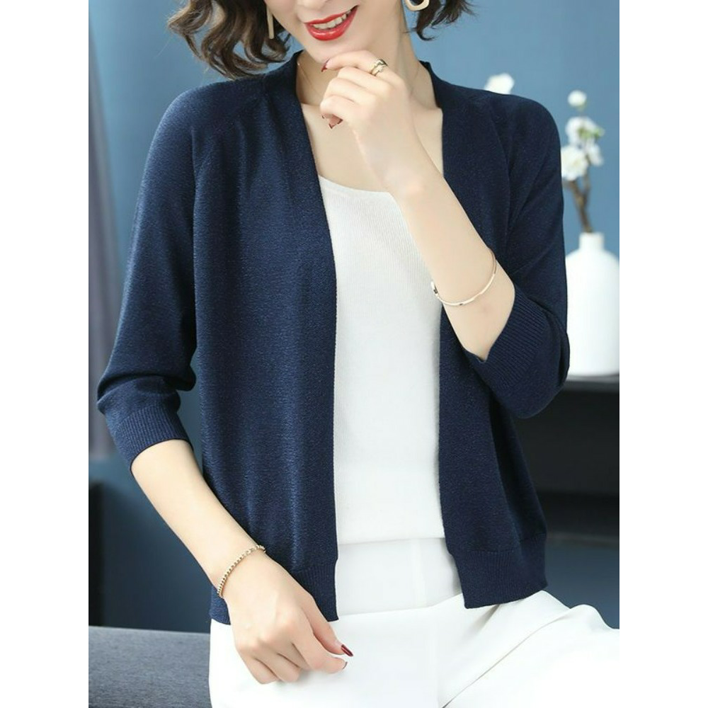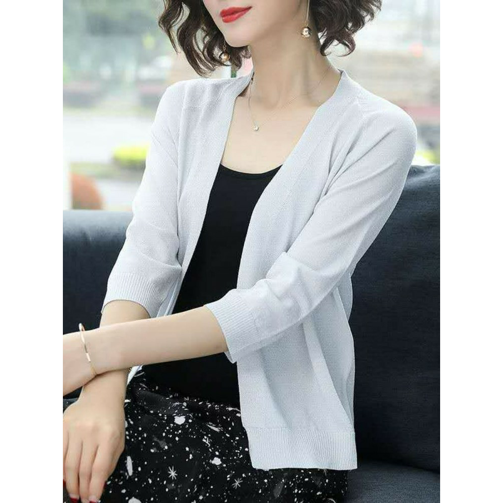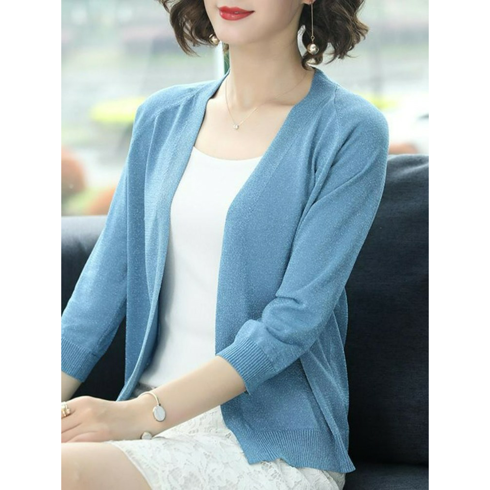 Mother's coat Summer dress Hollow cardigan Ice silk knitted shawl Outer middle-aged women's loose Western-style small shirt Thin section